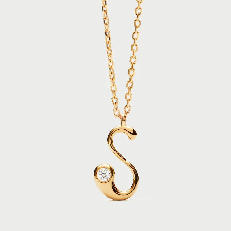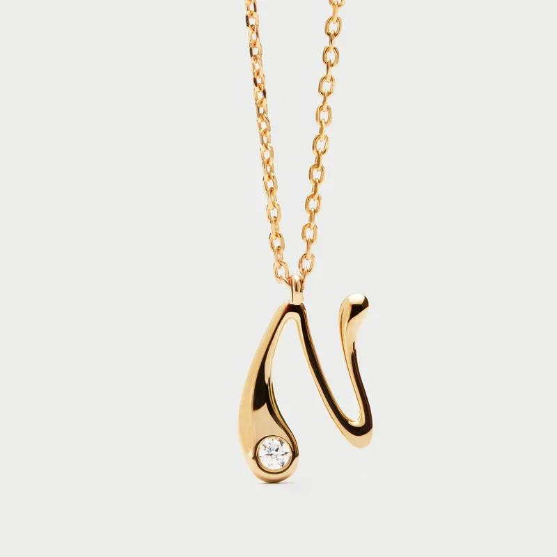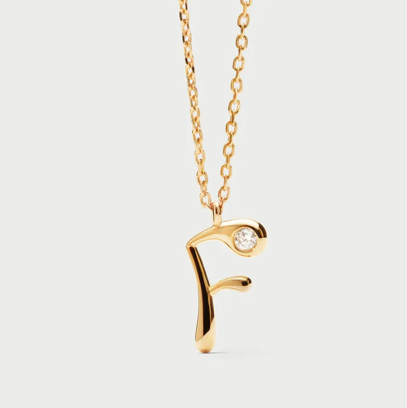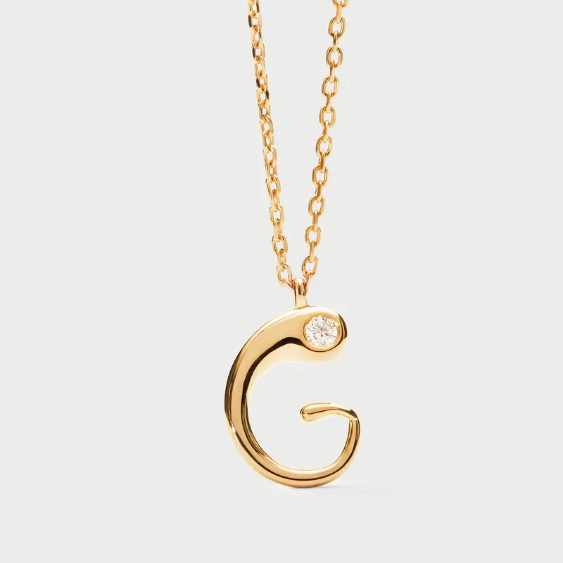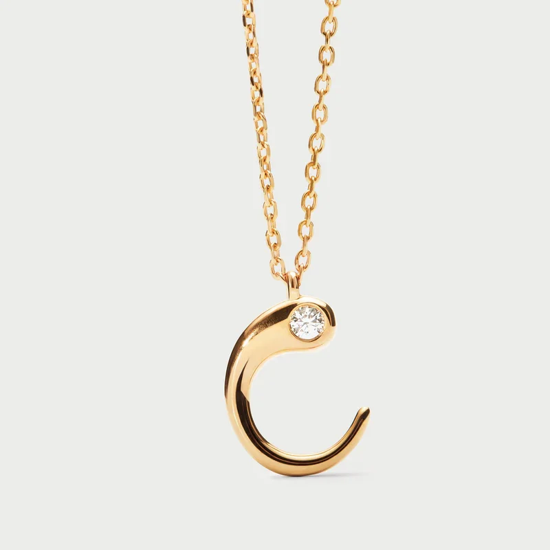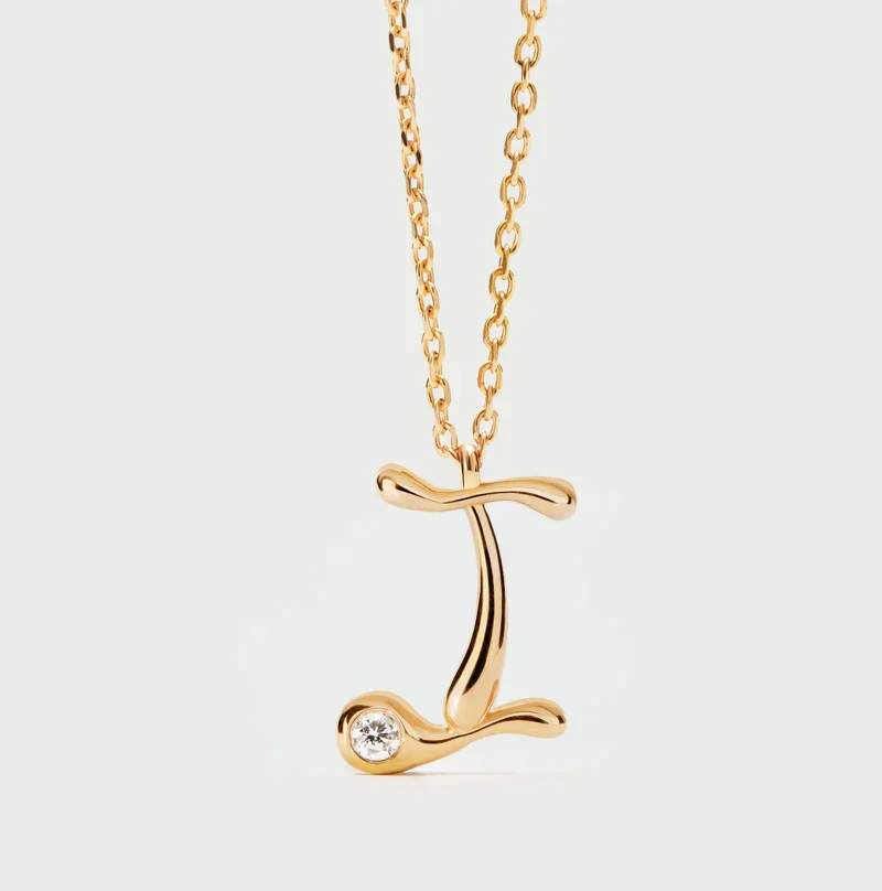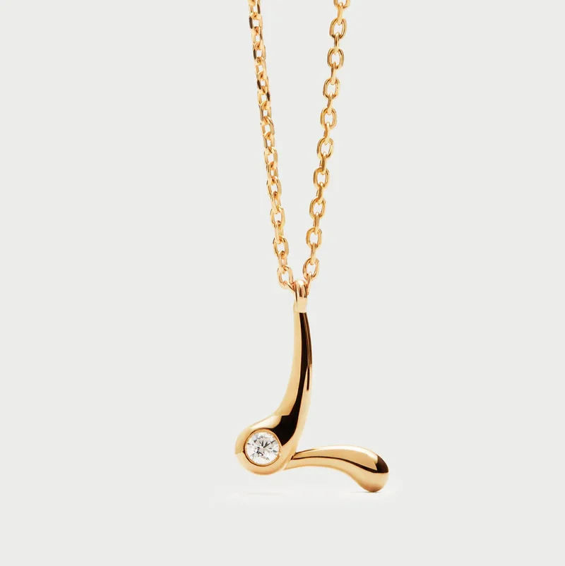 Collana con pendente iniziale. Collana in argento sterling placcato oro, con ciondolo iniziale dalle linee morbide e sinuose.