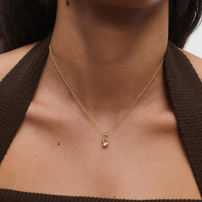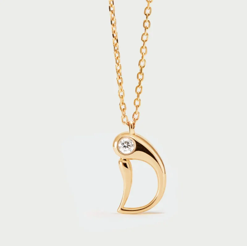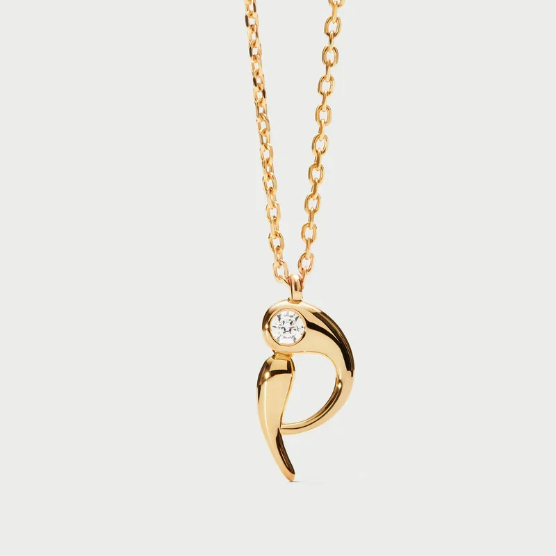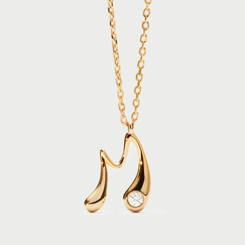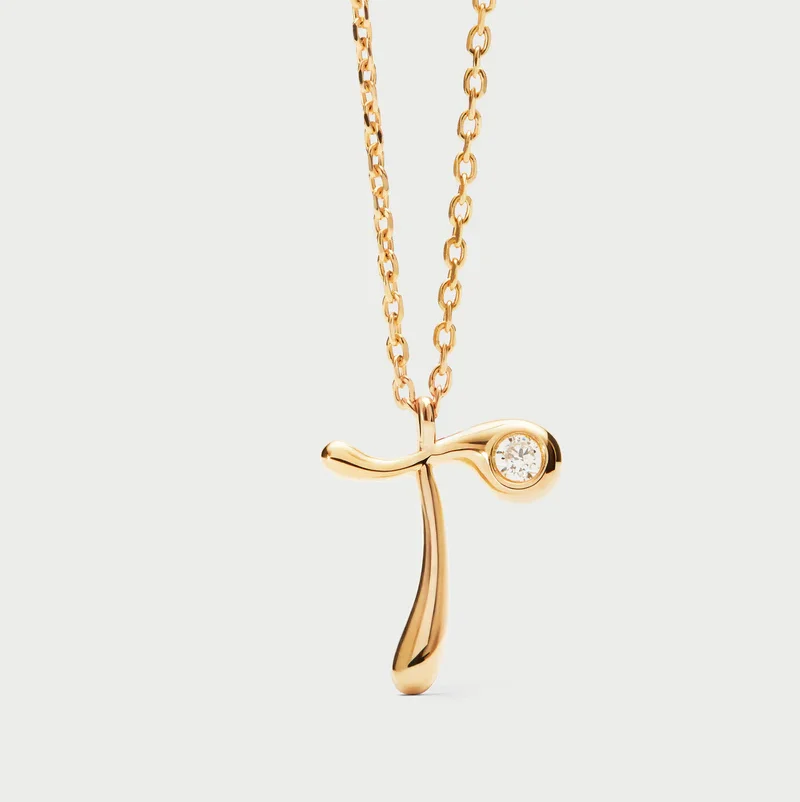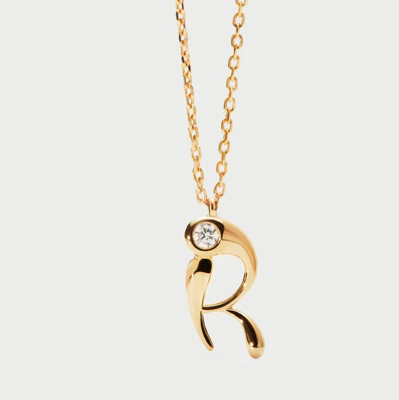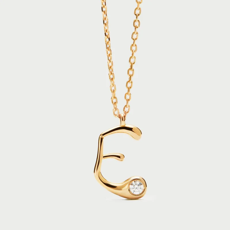 Collana con pendente iniziale. Collana in argento sterling placcato oro, con ciondolo iniziale dalle linee morbide e sinuose.