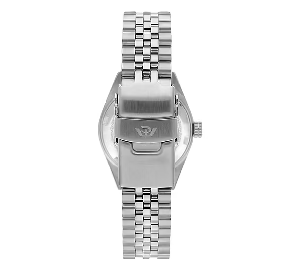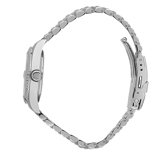 La cassa in solido acciaio, con finitura satinata e colore rosa, custodisce un quadrante protetto da un durevole vetro zaffiro. Il bracciale in metallo color argento consente una vestibilità gradevole e ben salda, grazie alla fibbia deployment con sicurezza a spinta laterale.